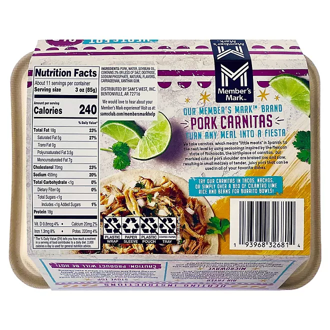 / Member’s Mark Fully Cooked Pork Carnitas 2 lbs.